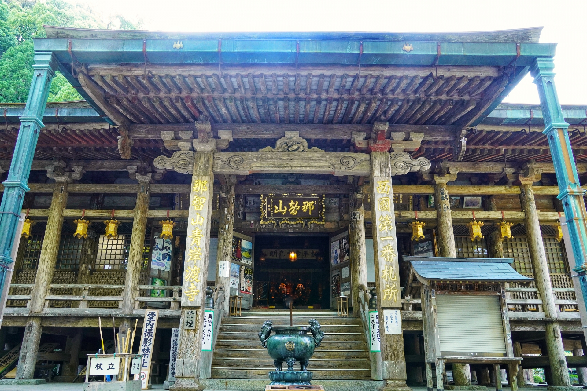 In front of the hall where the statue of Kannon is enshrined, Silently put palms together and pray.